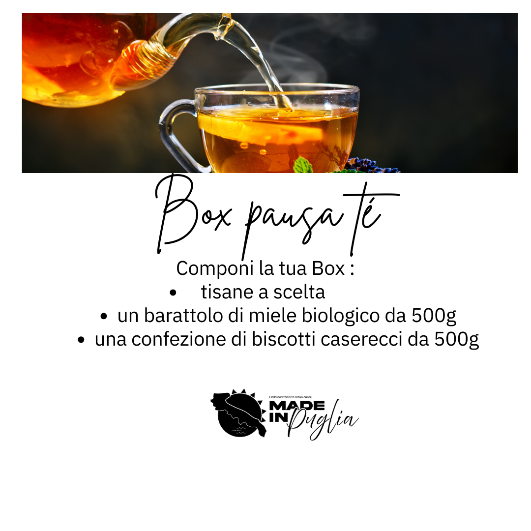 - 105 bustine da 2g di tè biologico di alta qualità (produzione locale), ben 7 gusti a scelta tra le nostre varianti di tisane: Tisana del Relax, Tisana Detox,Tisana del Risveglio,Tisana della Regolarità, Tisana della Buonanotte, Tisana della Silhouette, Tisana Drenante;